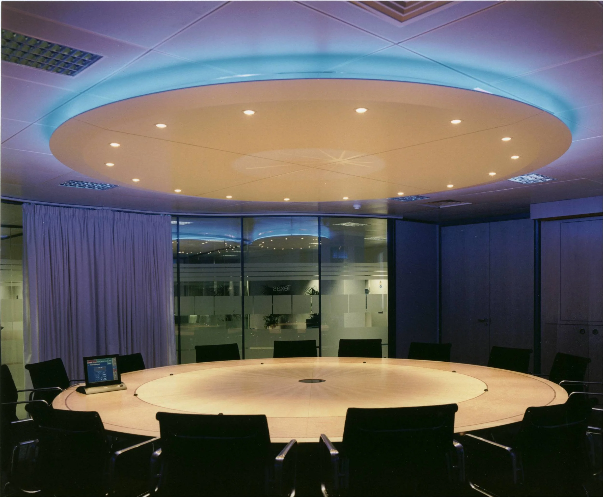 large boardroom table and meeting tables made in ripple figured sycamore, amboyna and inlay lines.